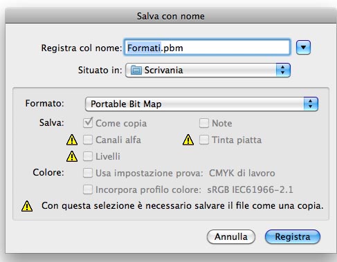 Uso del formato Photoshop 2.0 (nessuna estensione)
